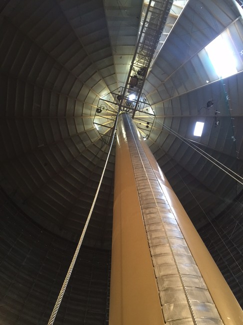 Výroba 50 m vysokého sila na brambory s obslužnou lávkou. Výroba byla provedena včetně kompletního nátěrového systému v našem závodě.